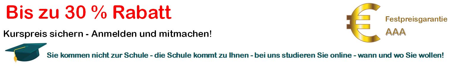 An unserer Einrichtung ist die Studienlaufzeit variabel (minimale- / maximale Studienlaufzeit). Die Studierenden legen die Studienlaufzeit und das Tempo selbst fest. Die minimale Studienlaufzeit laut Einschreibung ist die Regelstudienzeit. Die Regelstudienzeit / Vertragslaufzeit ergibt sich aus der jeweiligen Stundenanzahl des gebuchten Kurses.